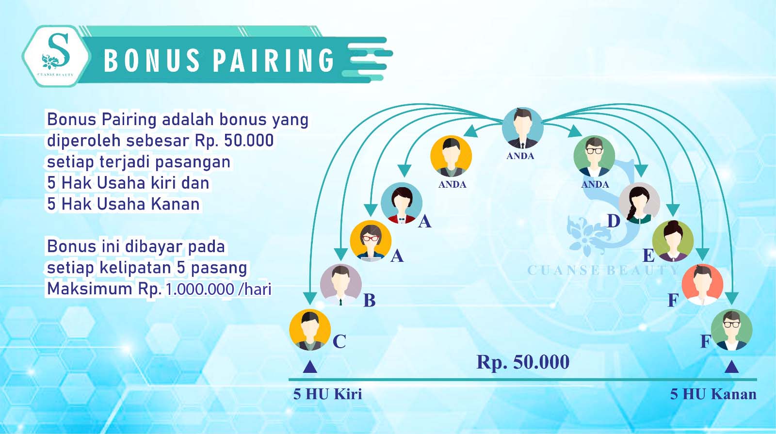 Setiap kali terjadi keseimbangan member di kiri dan di kanan anda, setiap satu pasangnya anda akan memperoleh