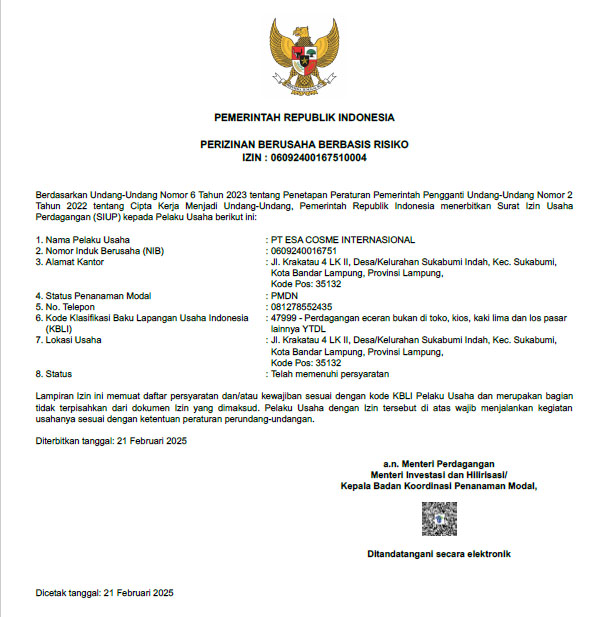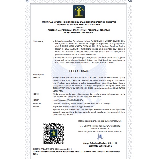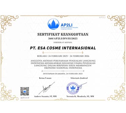 PT. Esa Cosme Internasional sebagai perusahaan Multi Level Marketing, memiliki komitmen yang kuat untuk memberikan manfaat dan pelayanan maksimal kepada mitra mitranya.